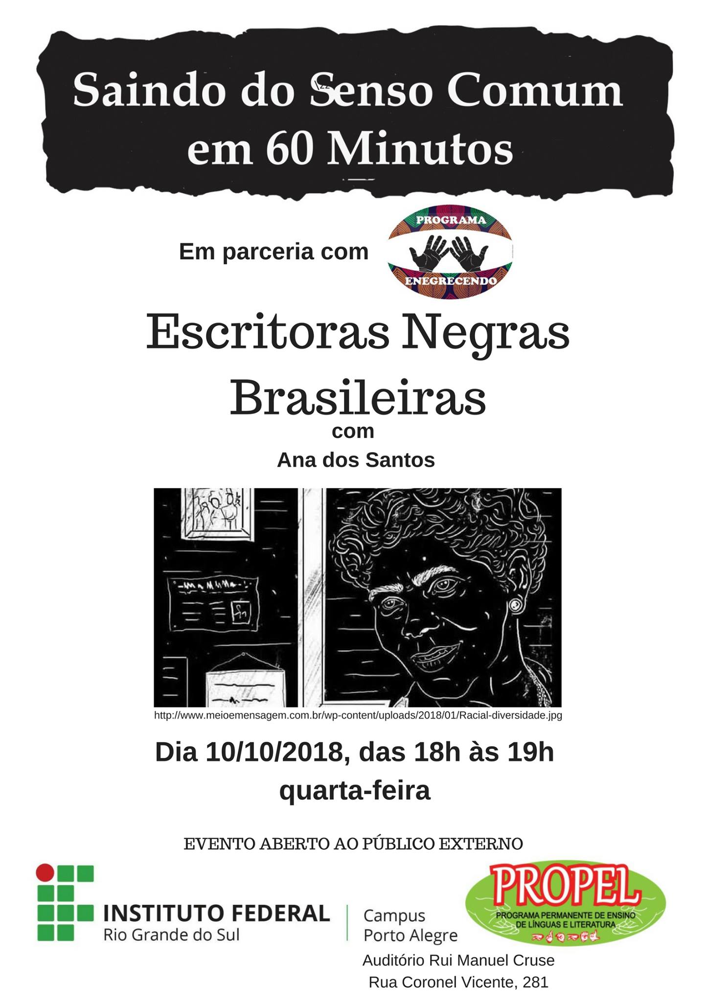 Palestra do evento "Saindo do Senso Comum em 60 minutos" terá como tema "Escritoras Negras Brasileiras", em parceria com o programa Enegrecendo