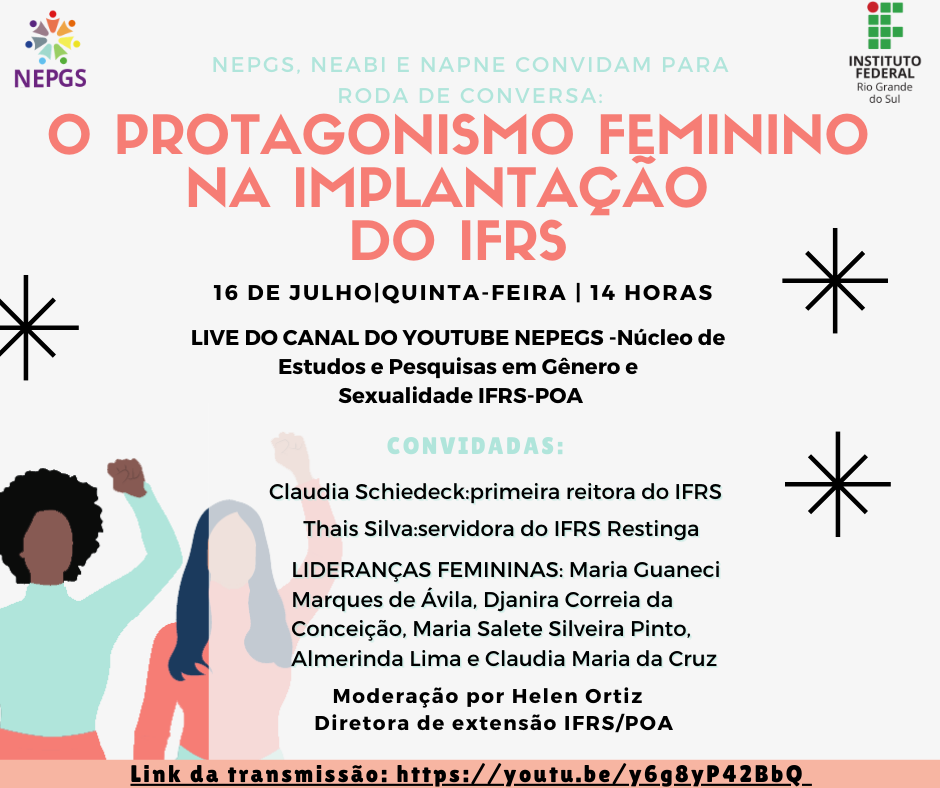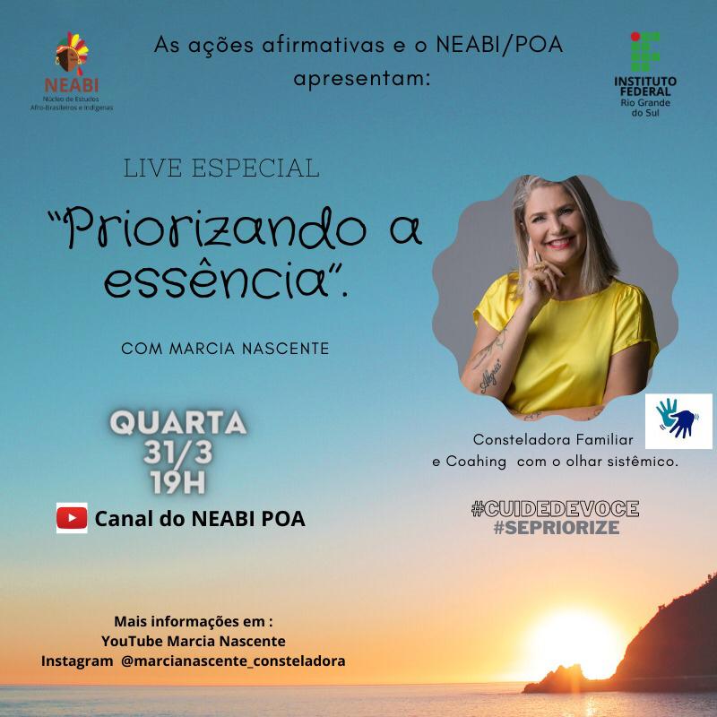 O Núcleo de Estudos Afro-Brasileiros e Indígenas (NEABI) do IFRS - Campus Porto Alegre promove nesta quarta-feira, 31 de março de 2021, às 19 horas, a live especial "Priorizando a...