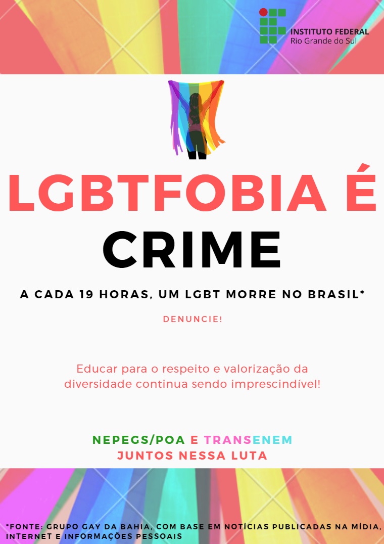 Dando continuidade às ações do Núcleo de Estudos e Pesquisas em Educação, Gênero e Sexualidade - NEPEGS do IFRS - Campus Porto Alegre, em alusão ao combate à homofobia e em defesa...