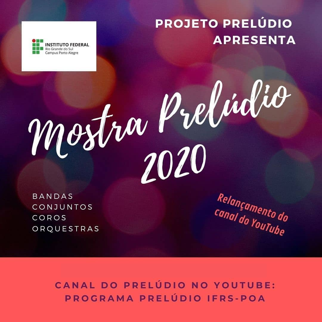 Já está no ar a Mostra Prelúdio 2020, mostra on-line permanente dos trabalhos realizados pelos grupos musicais - bandas, conjuntos, coros e orquestras - do Projeto Prelúdio em 2020. A...