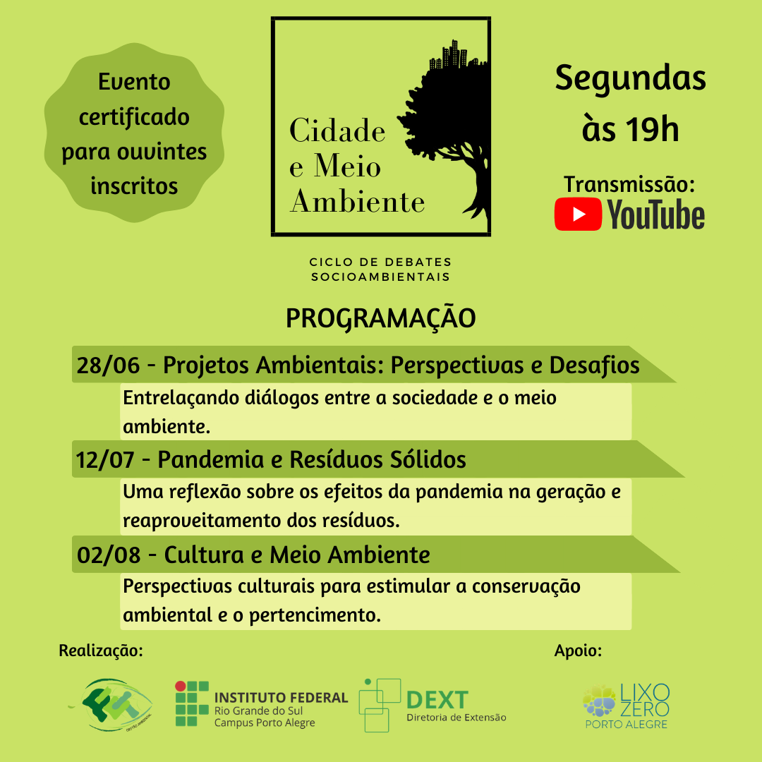 O grupo do Programa de Educação Tutorial - PET Conexões - Gestão Ambiental, do IFRS - Campus Porto Alegre, convida a comunidade para participar do I Ciclo de Debates Socioambientais do...