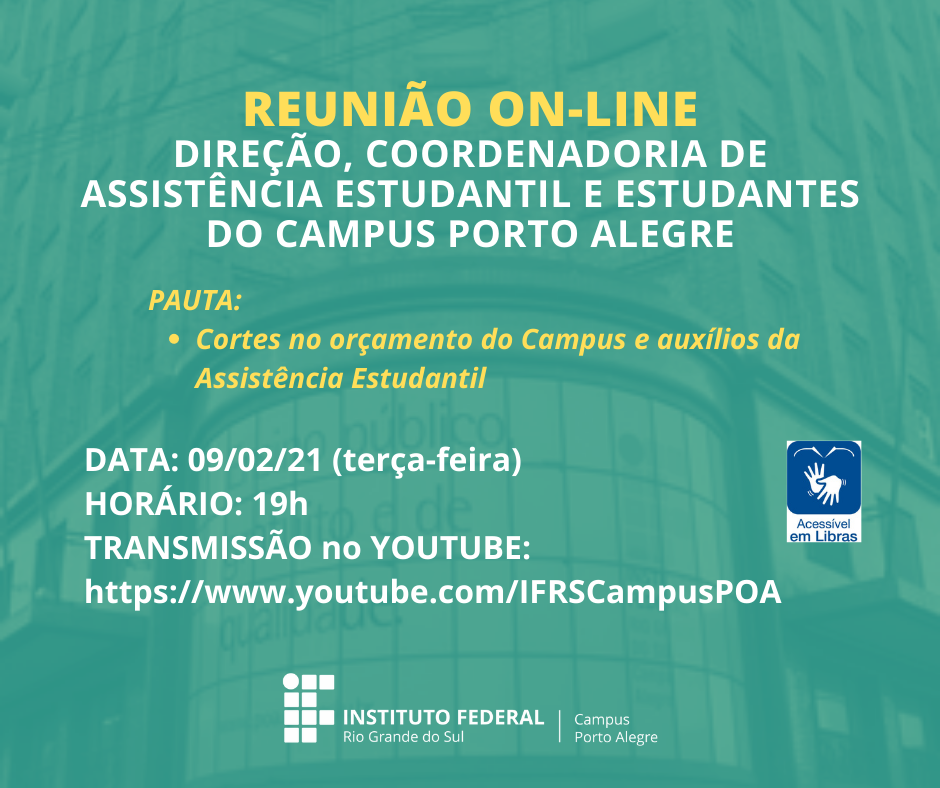 Prezados/as estudantes, O início do ano de 2021 está sendo marcado por um significativo cortes no orçamento do IFRS e, consequentemente, do Campus Porto Alegre. Esse corte tem um...