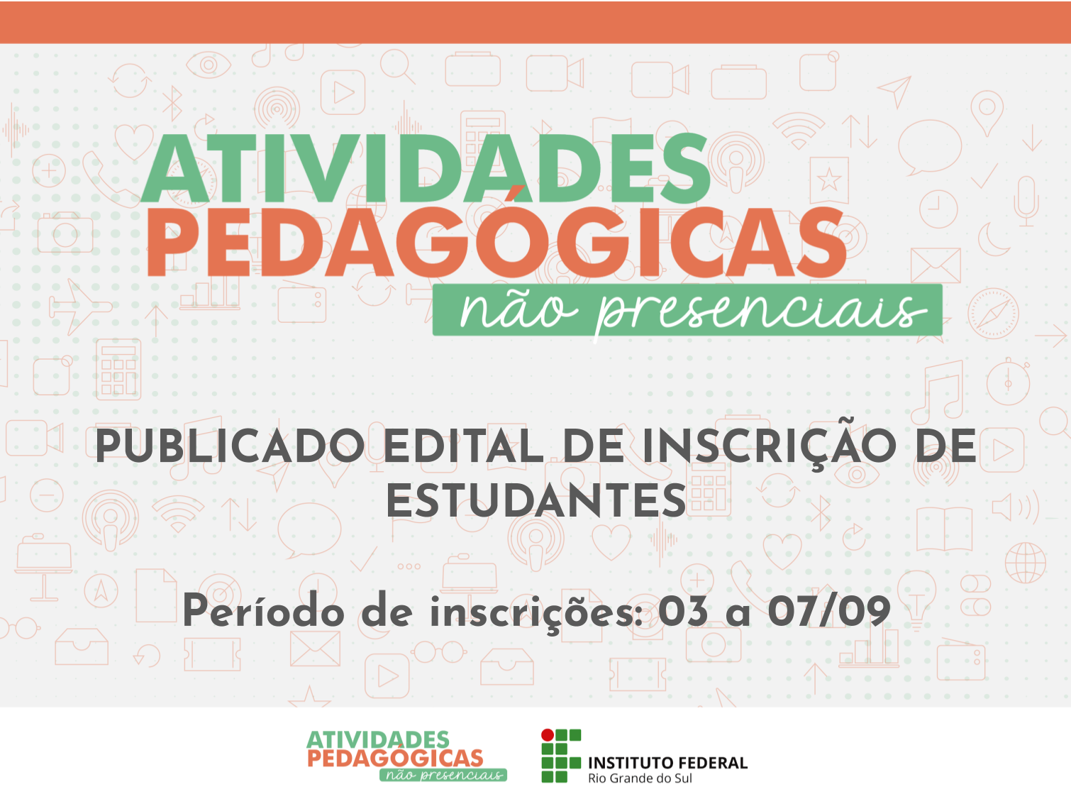 De 3 a 7 de setembro os estudantes regularmente matriculados no IFRS - Campus Porto Alegre podem se inscrever para as Atividades Pedagógicas Não Presenciais (APNPs). Nesta quinta-feira, 3...