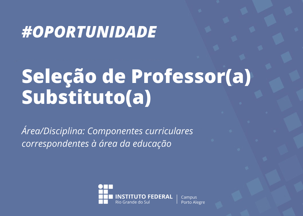 O IFRS - Campus Porto Alegre divulgou abertura de Processo Seletivo Simplificado com vistas à contratação por tempo determinado de Professor Substituto de ensino básico, técnico e...
