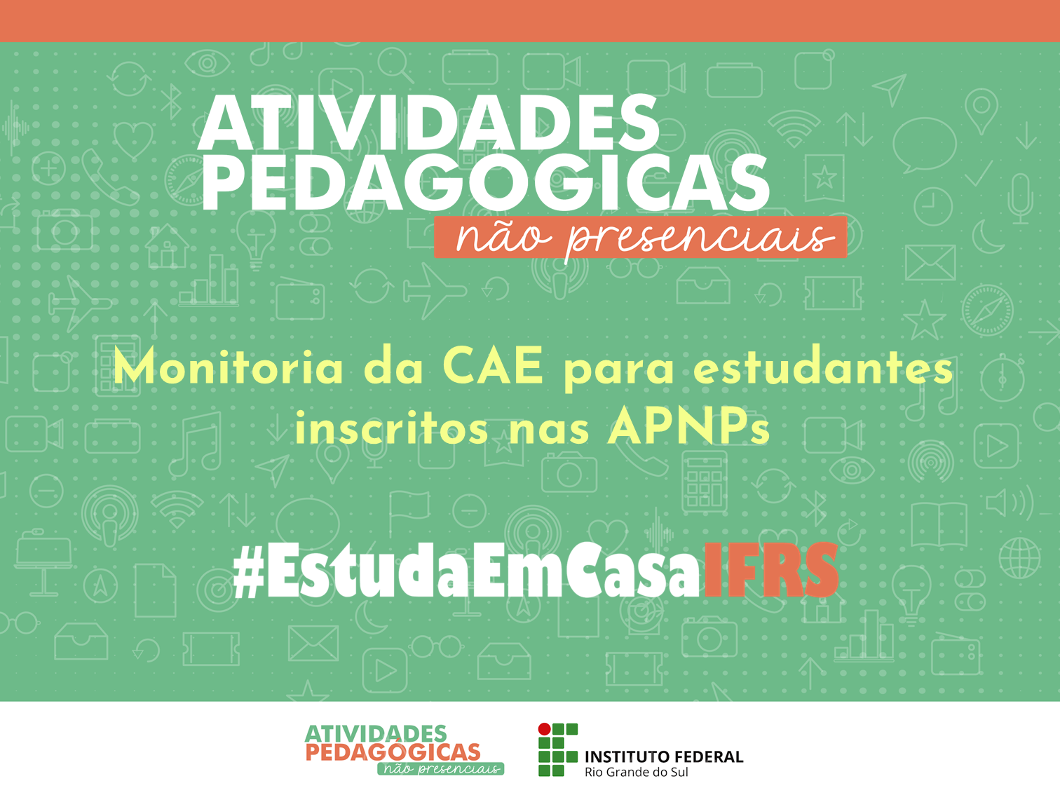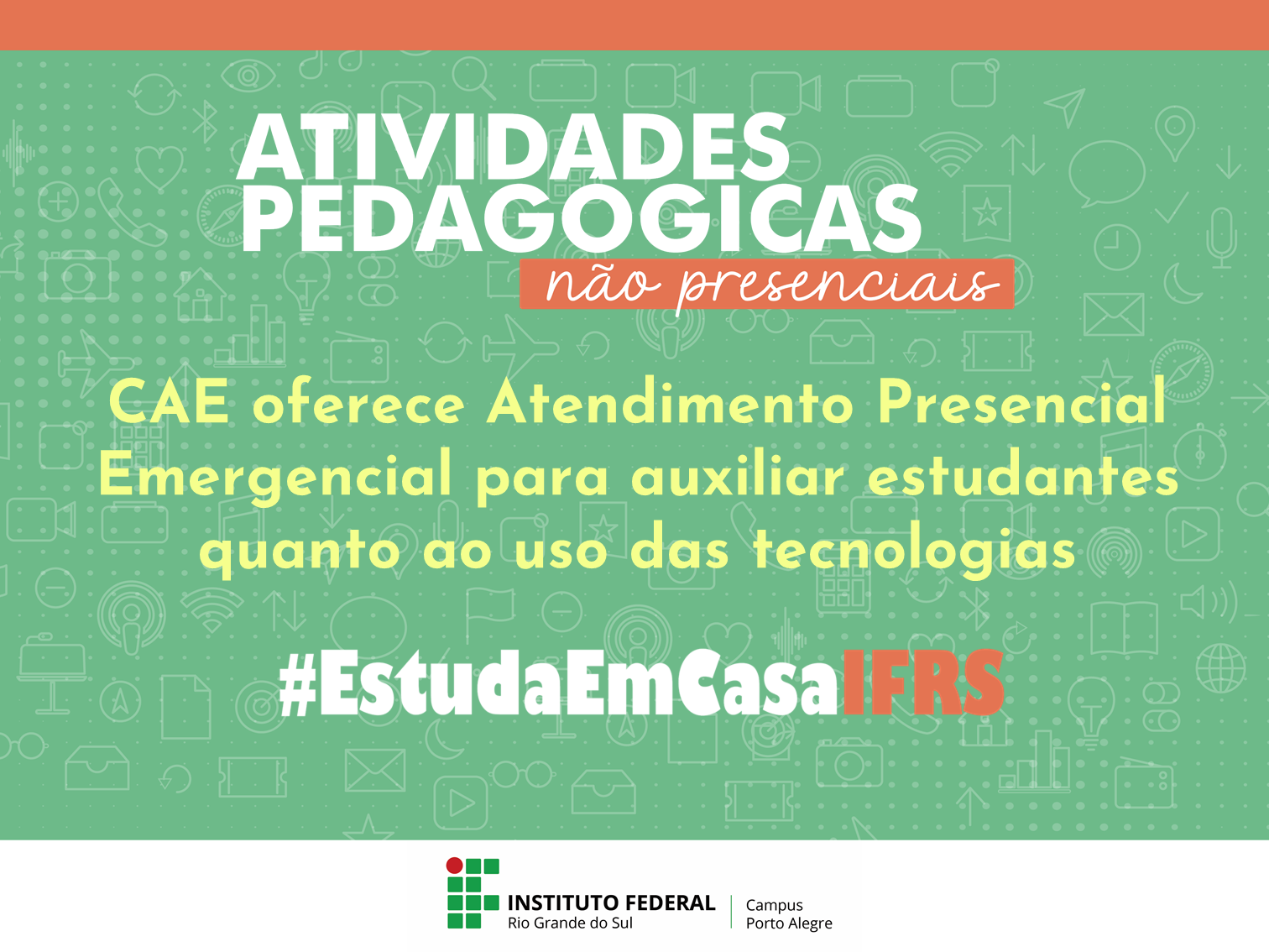 A Coordenadoria de Assistência Estudantil (CAE) do IFRS - Campus Porto Alegre está realizando atendimentos a estudantes inscritos nas Atividades Pedagógicas não Presenciais (APNPs) que...